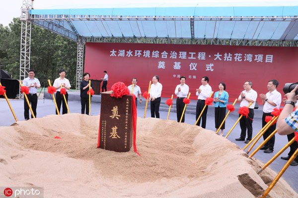 The foundation was laid for the construction of a 20-billion-yuan ($2.9 billion) Big Nianhua Bay in Yixing, a county-level city under Wuxi, on June 30. The bay will serve as a demonstration of how to properly manage a water environment and is expected to increase tourism in the area.