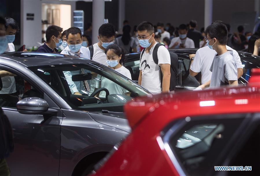 People visit an auto show in Wuhan, capital of Central China's Hubei province, Aug 13, 2020. More than 60 brands took part in the 18th Central China International Auto Show which started on Thursday. [Photo/Xinhua]