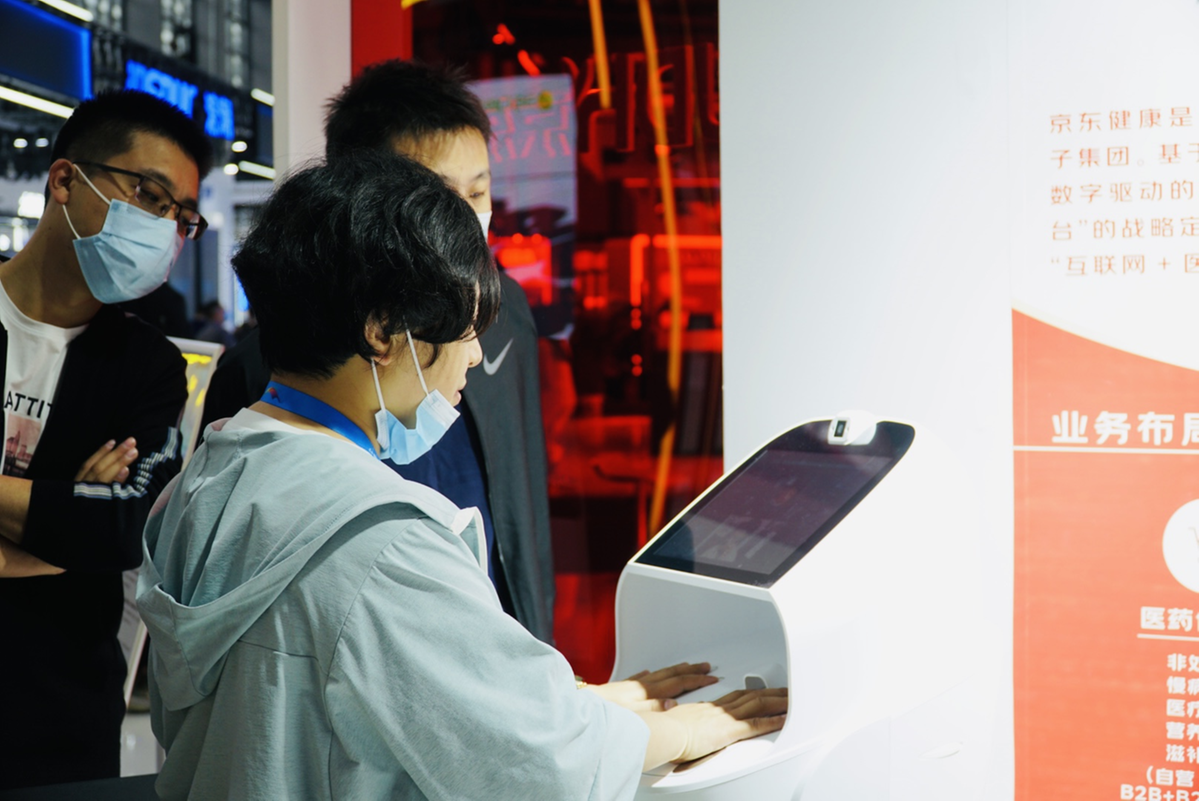A visitor samples a health testing machine at the China International Big Data Expo. [Photo/chinadaily.com.cn]