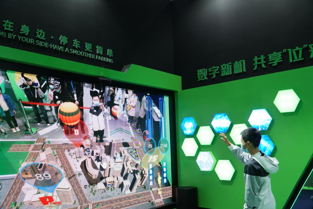 A visitor tries out a simulated parking sharing system at the China International Big Data Expo. [Photo/chinadaily.com.cn]