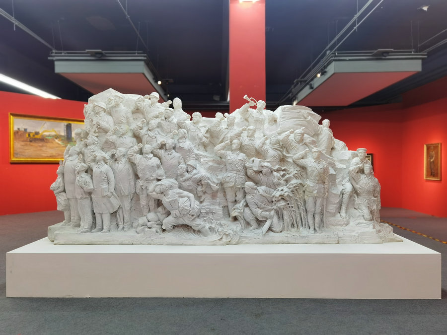The exhibition until Oct 26 at the 798 International Art Exchange Center displays 23 artworks reflecting the country's social, economic and cultural landscapes, such as the construction of Xiong'an New Area and the efforts to halt the COVID-19 pandemic.