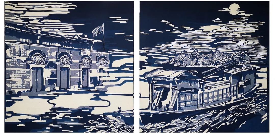 This folk craftsman of Jiaxing, East China’s Zhejiang province can draw artworks on cloth with blue dyestuff derived from an herb called radix isatidis. The Zhejiang Provincial Museum is having an exhibit of more than 20 pieces of white cloth dyed with blue designs created by the inheritor of the traditional folk craft, Ai Jingwei. Let’s wander through his blue-and-white world!