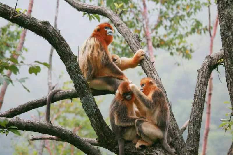 The population of wild golden snub-nose monkeys in Shennongjia National Park in Hubei province is increasing after years of protection — from 500 in the 1980s to around 1,470 currently.
