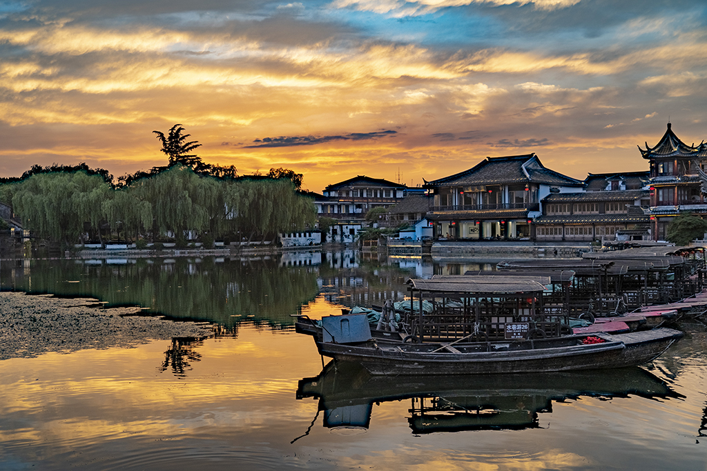 On June 26, as the summer evening unfolded in Jinxi ancient town, Kunshan, Jiangsu province, a magnificent sunset painted the sky. Amidst the rainy season of the Jiangnan region, this breathtaking sight captivated tourists, causing them to pause in admiration.