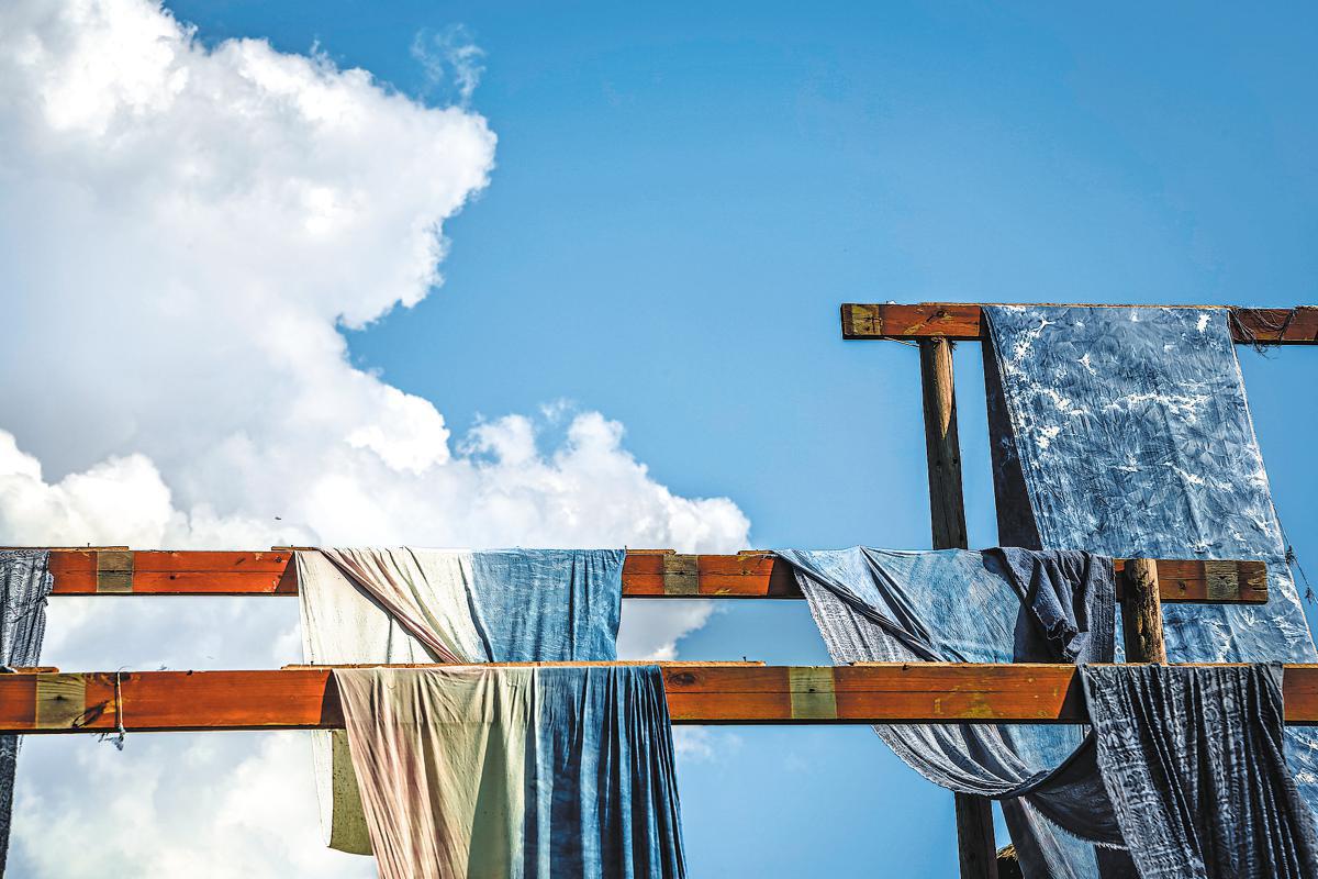 Tie-dyes of the Yao ethnic group aired by residents in Libo's Yaoshan ancient village. LIU HEXIN/FOR CHINA DAILY