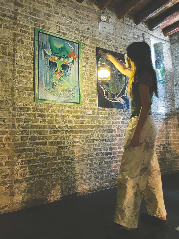 For her exhibition, Li designed an installation where letters glimmer gently in a dark, quiet space, visible only as viewers draw near.