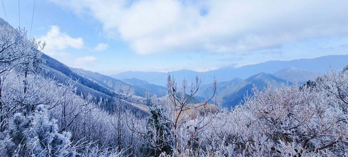 A white wonderland is created in Guidong county, Hunan province, recently as supercooled water droplets in fog rapidly freeze on cold surfaces, creating rime. [Photo by Deng Yanping/For chinadaily.com.cn]