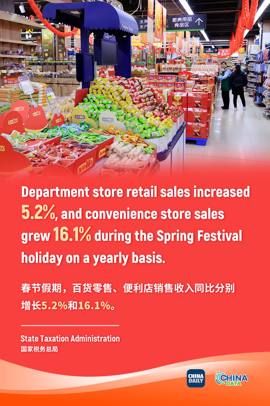 Editor's note: As China wraps up its 8-day Spring Festival holiday, the country has witnessed consumption booms ignited by hundreds of millions of family reunions during the period that ran from Jan 28 through Feb 4 this year.