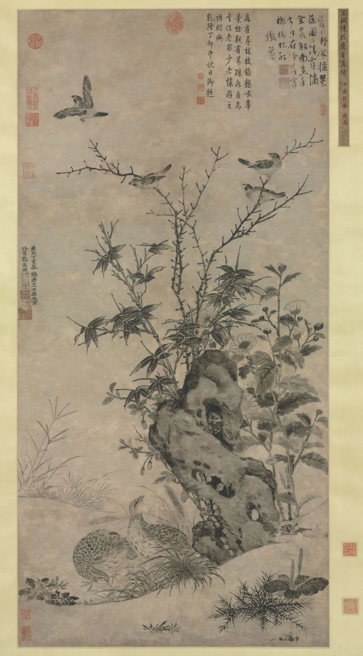 Quails and Sparrows in Autumn, Wang Yuan, Yuan Dynasty (1271-1368) [Photo/Official WeChat account of the WHU Wanlin Art Museum]