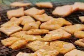 The beancurd is cut three cm long and 0.5 cm thick, then baked on a barbed wire above a sawdust-burning brazier after being soaked in marinade.