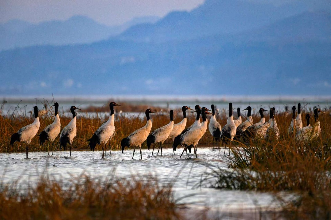 Black-necked cranes return to Guizhou's Caohai reserve for winter
