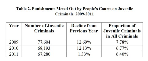 (Table 2. Punishments Meted Out by People's Courts on Juvenile Criminals, 2009-2011)