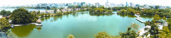 Previously known as Luohu, the West Lake Park in Leizhou is located in the northwestern corner of the ancient Leizhou town, and covers an area of more than 90,000 square meters. In the first year of the Qianxing Reign (1022) in the Song Dynasty (960-1279), Kou Zhun (961-1023), a well-known politician, was demoted to Leizhou and lived in a residence by the lake. Ever since then, quite a few celebrities lived or visited here. In the fourth year of the Shaosheng Reign of Emperor Zezong of the Song Dynasty (1097), Su Shi, a well-known politician and litterateur, was demoted from Huizhou to Danzhou. He and his brother Su Zhe went boating on the lake in the evening, and appreciated the moon there. In the West Lake Park there are many historic sites, such as the Sugong Pavilion, the Shrine of Ten Sages, the Laiquan Well and the Dragon King Temple. The monumental archway stands in the willows, beside the bridges and the winding corridors. There is a large amusement park as well!