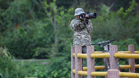 A visitor takes photos of beautiful scenery in Lvtang River Wetland Park in Zhanjiang. [Photo/Zhanjiang Evening News]