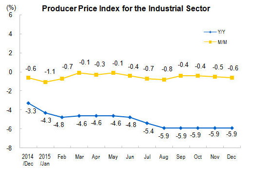 China's producer price index (PPI), a measure of cost for goods at the factory gate, dropped 5.2 percent year-on-year in 2015, widening from the 1.9-percent slip registered in 2014, according to the National Bureau of Statistics (NBS).
