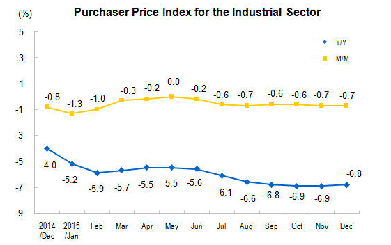 In December alone, the purchaser price index for manufactured goods decreased 0.7 percent month-on-month, a decrease of 6.8 percent year-on-year.