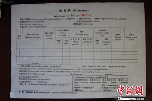 A sample of a cargo manifest recognized by both Customs of China and Mongolia [Photo/chinanews.com]