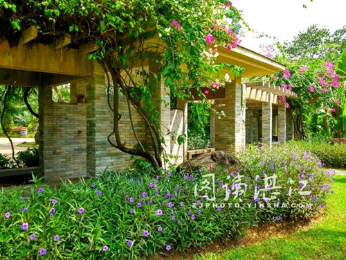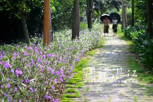 Orchids surround the pavilion at Lvtang River Wetland Park in Zhanjiang. [Photo/zj.southcn.com] |