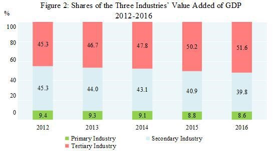 The per capita GDP in 2016 was 53,980 yuan, up by 6.1 percent compared with the previous year. The gross national income in 2016 was 74,235.2 billion yuan, up by 6.9 percent over the previous year.