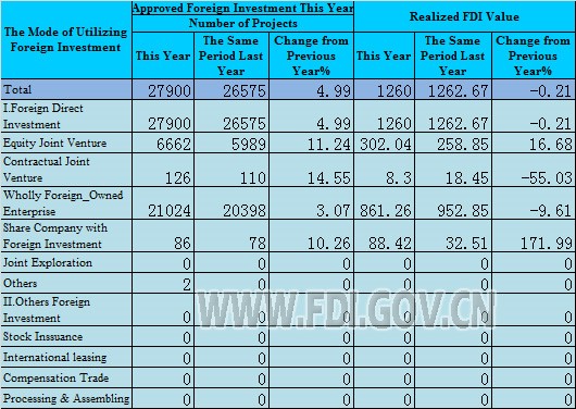 In 2016, 27,900 enterprises (excluding banking, securities and insurance) with foreign direct investment were established, an increase of 5.0 percent over the previous year; and the foreign capital actually utilized was 813.2 billion yuan($126.0 billion), up by 4.1 percent.