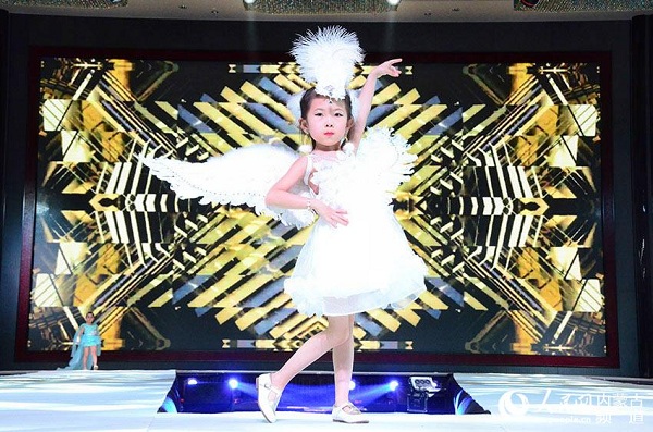 A child poses on the stage during the 2nd Inner Mongolia Fashion Show―Children’s Model Contest held in Hohhot on April 15. [Photo/people.cn]