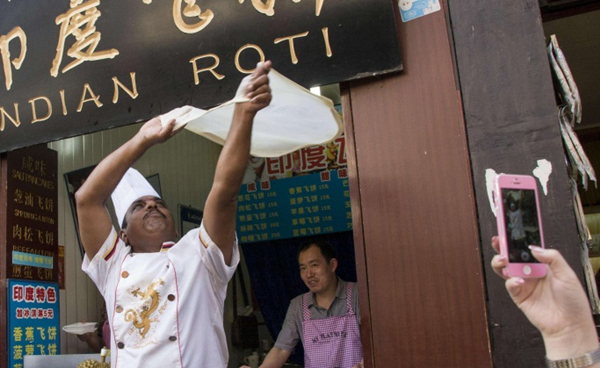 A male chef shows off some roti making skills. [Photo provided to chinadaily.com.cn]