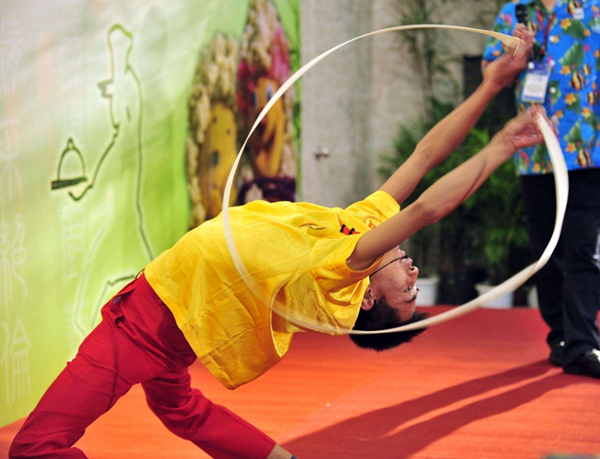 This chef performs an elaborate noodle dance prior to cooking. [Photo provided to chinadaily.com.cn]