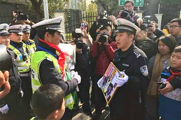 Traffic police and local residents say their last thanks to Qin at a farewell ceremony held on Feb 28, 2017. [Photo provided to China Daily] |