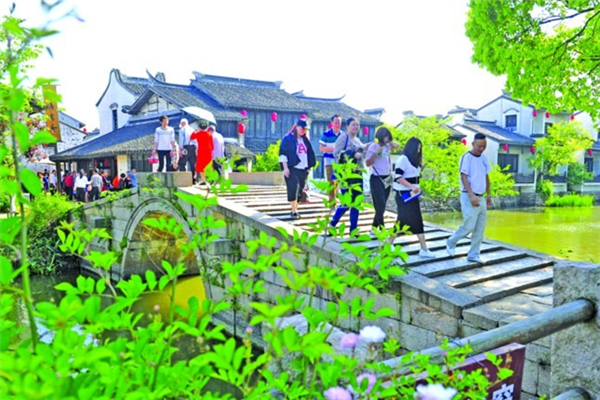 Visitors tour around the Xuntang Ancient Town near the Taihu New City in Wuxi, Jiangsu province on May 1. [Photo provided to chinadaily.com.cn]
