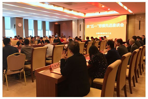 | Wuxi Xinwu district hosts a meeting, commending citywide model employees, April 28. [Photo/Federation of Trade Union of Xinwu district] |