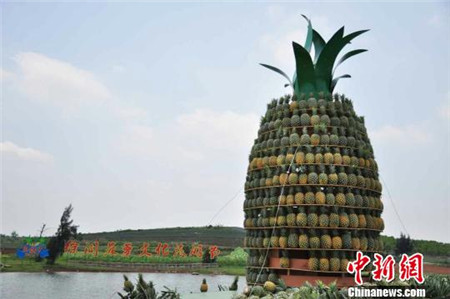 It was the second time Xuwen, the largest pineapple manufacturer in China, held the festival. A total of no less than 260,000 mu (17,333 hectares) of fields produce over 400,000 metric tons of pineapples a year, approximately a third of China's total.