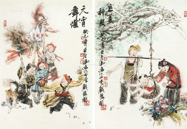 Weigh a Baby on the Start of Summer (right), by Feng Yuan. [Photo/artron.net]