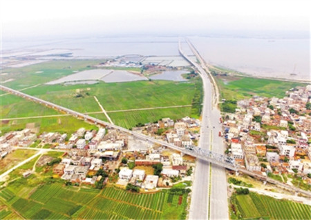A decade of efforts in transport development is bringing it closer to Donghai Island's goal of creating "Three Horizontals and Four Verticals" and agglomerating its port-centered industry.