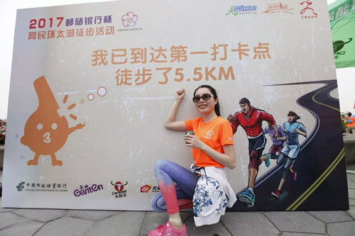A hiker on the 30 km route arrives at the first stop along the way, May 7. [Photo provided to China Daily]