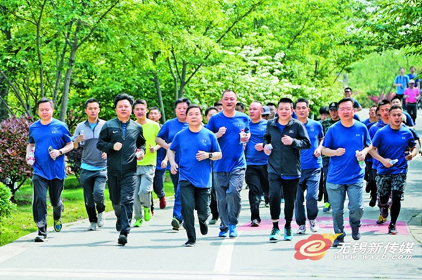 Wuxi police officers even jogged a bit on their hike to advocate environmental protection on April 22, World Earth Day. [Photo/wxrb.com] |