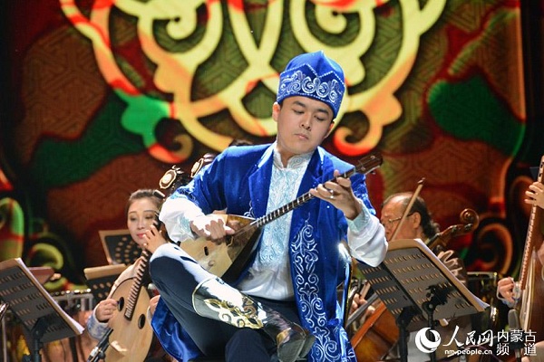 A performer plays a traditional Mongolian instrument during the concert in Beijing. [Photo/people.cn]