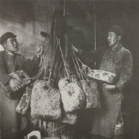 Workers make rice wine at Yuqi Distillery in Yuqi town, Wuxi, in 1970. [Photo provided to chinadaily.com.cn]