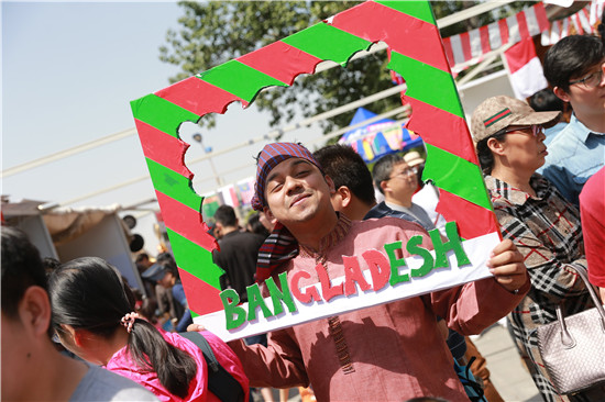 | A student from Bangladesh attends the International Culture Festival. [Photo/Xinhua by Wang Xiaoming] |