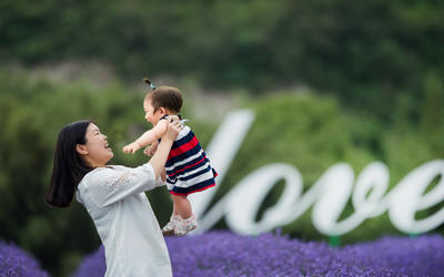 This woman spends quality time with her baby girl amid the rich purple of lavender fields. [Photo provided to chinadaily.com.cn]