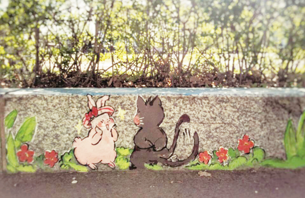 Several cute and pretty graffiti paintings, including calabash brothers, Tom and Jerry, and Doraemon, were recently drawn on the roadside curbs on the Hudong campus of Changchun Institute of Technology.