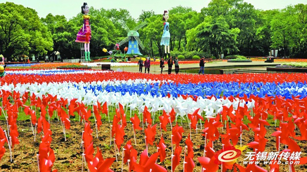 Windmills turn in the Plum Garden in Wuxi. [Photo/wxrb.com] |