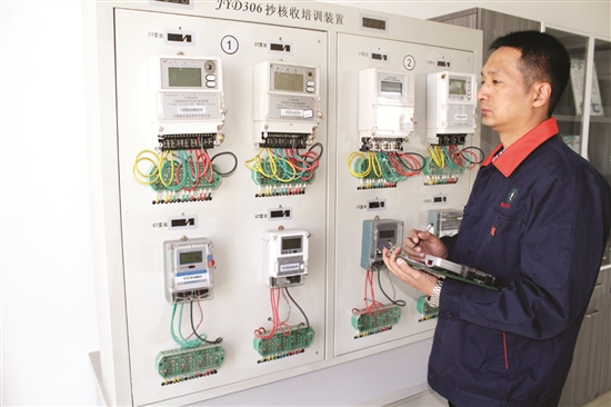 | Song Fei, one of the winners of Baotou Labor Award, reads meters. After starting his career as a wireman, Song is now a team leader at the Baotou power supply bureau after years of work and effort. [Photo/Baotou Daily] |