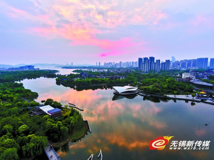 Rosy clouds adorn the Wuxi skyline. [Photo/wxrb.com]