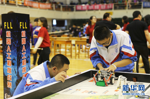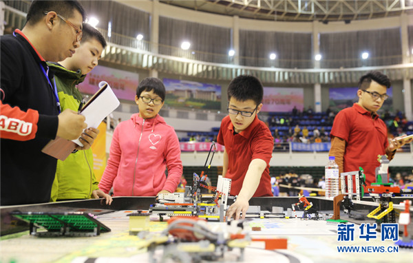 | The competition was intended to promote the development of robot contests for teenagers and to improve innovation levels of young people. [Photo/Xinhua] |