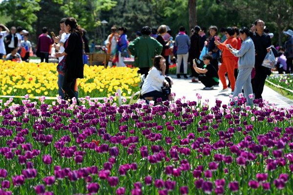 More than 50 types of tulips are flourishing in Changchun Park, Jilin province, as it has been getting warmer and warmer since early May, attracting many tourists.