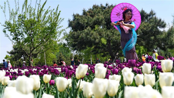 More than 50 types of tulips are flourishing in Changchun Park, Jilin province, as it has been getting warmer and warmer since early May, attracting many tourists.