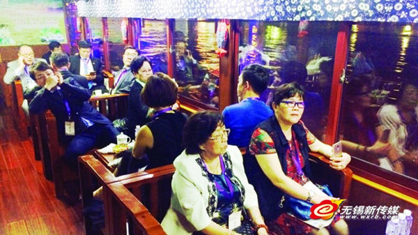 | The guests enjoy a cruise around the Grand Canal in central Wuxi on May 21. [Photo/ wxrb.com] |