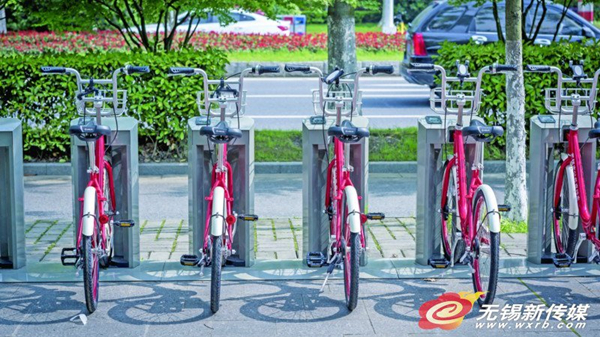 The public rental service reinstated by the Wuxi government has been posed on the road since May 10, with a total of 11,000 shiny red bicycles to be added in succession to the fleet by the end of the month.