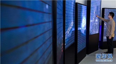 | A staff member explains big data functions in the Guizhou Shuanglong Airport Economic Zone. [Photo by Ou Dongqu/gz.xinhuanet.com] |