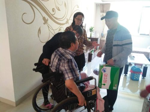 | Officials and volunteers from Liuhecheng Community give zongzi, milk and fruit as Dragon Boat Festival gifts to residents who are disabled, May 23. [Photo/baotounews.com.cn] |